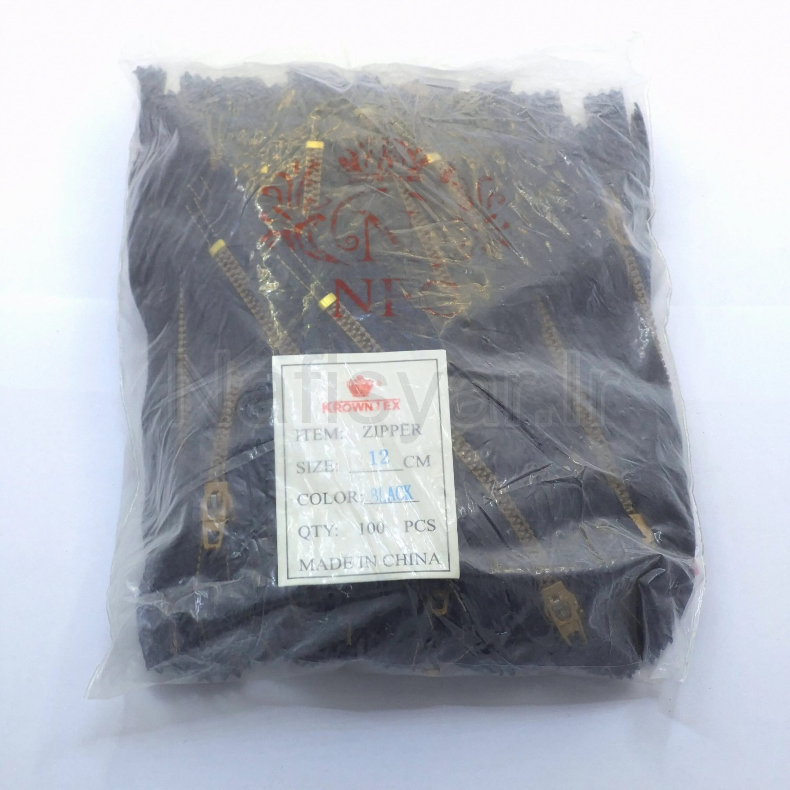 زیپ 12 سانتی طرح فلز دنده زرد 100 تایی